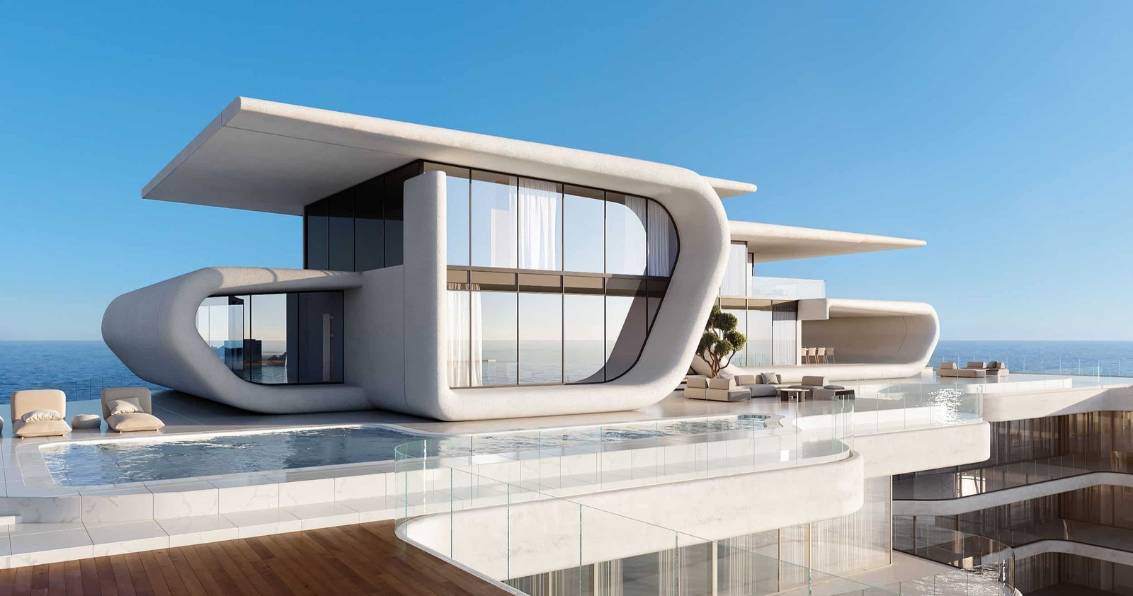 Top of The Astera is the sky villa at The Astera on Al Marjan Island, a four-bedroom residence of 12,276.7 sq ft spanning the upper floors of the tower with 360-degree views across the Arabian Gulf and Al Marjan Island's lagoon network. The residence includes a private pool, entertainment terraces, a dedicated service entrance and full amenity access of The Astera development below. One configuration, one buyer.